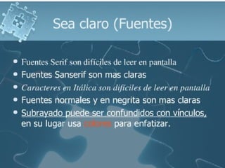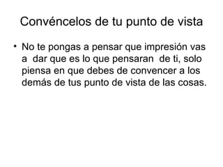 Este documento proporciona consejos para realizar presentaciones efectivas en PowerPoint. Recomienda convencer al público con argumentos sólidos en lugar de enfoques atractivos, captar su atención de manera sencilla, y ser claro en el uso de texto, gráficos e imágenes para transmitir el mensaje de manera concisa.