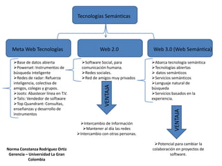 La Web 3.0 (Web Semántica) abarca tecnologías semánticas que utilizan datos semánticos y lenguajes naturales de búsqueda para proporcionar servicios semánticos y servicios basados en la experiencia del usuario. Esto tiene el potencial de cambiar la forma en que las personas colaboran en proyectos de software.