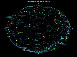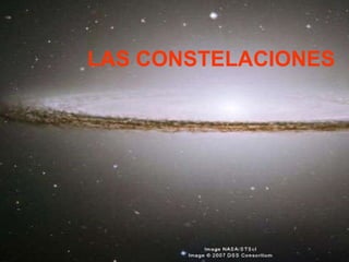 Este documento presenta información sobre las constelaciones. Explica que actualmente hay 88 constelaciones reconocidas por la Unión Astronómica Internacional que dividen todo el cielo. También describe brevemente cómo se formaron las constelaciones a través de los siglos y cómo su representación ha cambiado de figuras a límites precisos. Finalmente, habla sobre dos constelaciones en particular, la Cruz del Sur y sus primeras observaciones registradas por Marco Polo y Américo Vespucio.