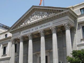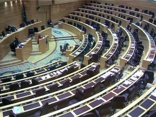 La Constitución española de 1978 tiene una estructura en dos partes. La parte dogmática contiene los principios y valores fundamentales como los derechos de los ciudadanos. La parte orgánica establece la estructura del Estado español al regular los órganos del gobierno como la Corona, las Cortes Generales, el Gobierno, el poder judicial y la organización territorial.