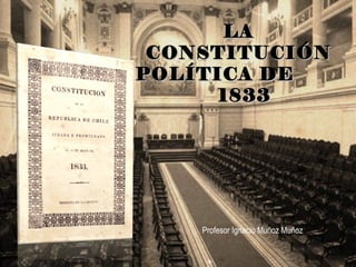 La Constitución de 1833 estableció un período de gobiernos conservadores entre 1831 y 1861 y rigió hasta 1925. Definió un régimen presidencialista y de gobierno representativo con sufragio censitario. Dividió los poderes del Estado entre ejecutivo, legislativo y judicial. Otorgó garantías constitucionales como igualdad ante la ley e inviolabilidad de la propiedad. Fue reformada en diversas oportunidades para ampliar derechos y modificar aspectos como la reelección presidencial.
