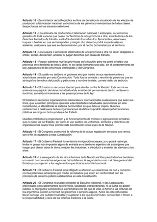 La Constitución de la Nación Argentina establece que el país adopta la forma de gobierno republicana federal y define los principios fundamentales de la organización política y los derechos y garantías de los ciudadanos. Se compone de una introducción y 22 artículos que describen la forma de gobierno, las relaciones entre la Nación y las provincias, y los derechos civiles y políticos de los habitantes.
