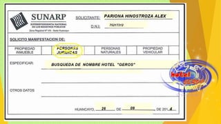 El documento resume los pasos para establecer una persona jurídica en Perú, incluyendo la elaboración de una minuta, escritura pública, inscripción en registros públicos, obtención de RUC, legalización de libros contables, acogimiento a la ley de MYPE, registro de planillas de pago, licencia municipal de funcionamiento y permisos especiales.
