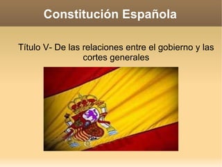 El documento describe las relaciones entre el gobierno y las cortes generales en España según la Constitución Española. Establece que el gobierno es responsable ante el parlamento y debe informar a las cámaras, y también trata sobre cuestiones de confianza, mociones de censura, dimisiones del gobierno, disolución de las cámaras, y estados de alarma, excepción y sitio.