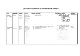 El documento compara las características del constitucionalismo español en el Estatuto Real de 1834 y la Constitución de 1837 en 3 oraciones: