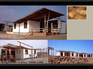 El documento describe las características del bambú, incluyendo que hay más de 1300 especies en el mundo y 36 nativas en Perú. El bambú es una caña dura que alcanza su máxima resistencia entre los 3 y 6 años. La guadua angustifolia es la especie más utilizada en Latinoamérica y es más dura que el acero. El documento también detalla aplicaciones constructivas y ventajas del bambú.