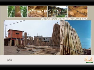 El documento proporciona información sobre el bambú, incluyendo sus características, usos principales y detalles sobre su aplicación en la construcción. El bambú es una planta de la familia de las gramíneas conocida como "acero vegetal" debido a su alta resistencia. Se utiliza comúnmente en Sudamérica para la construcción de viviendas y estructuras debido a sus propiedades antisísmicas y sustentables. El documento también describe las diferentes partes, tipos y técnicas constructivas del bambú.