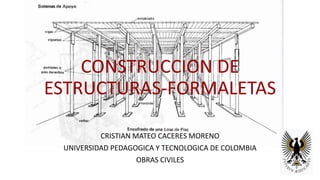 Las formaletas son moldes donde se vierte el concreto para dar forma a las estructuras. Representan un costo significativo en la construcción y deben ser estables, resistentes y permitir un acabado uniforme de la superficie del concreto. Se usan diferentes tipos de formaletas y equipos para cimientos, columnas, muros, pisos y otras partes de una edificación.