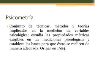 Este documento describe los principales conceptos y etapas en la construcción de pruebas psicológicas. Explica temas como la teoría clásica de las pruebas, la confiabilidad, la validez, el análisis de reactivos, la estandarización y el análisis técnico necesario para garantizar que una prueba mida de manera fiable y válida el constructo deseado.