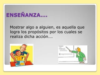 El documento describe los principios del constructivismo en la enseñanza y el aprendizaje. Según el constructivismo, los estudiantes construyen activamente su propio conocimiento a través de la interacción con su entorno y experiencias. Los docentes juegan un papel de guía para ayudar a los estudiantes a reestructurar sus ideas a través de la participación y el consenso. El constructivismo sugiere que el aprendizaje sea significativo y situado en contextos reales a través de la colaboración y la resolución de problemas.