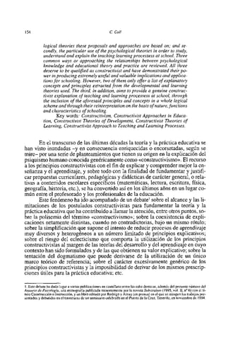 Este documento discute tres enfoques diferentes para entender las relaciones entre la psicología y la educación. Aunque todos buscan mejorar la educación aplicando conocimientos psicológicos, difieren en cómo lo hacen. El autor argumenta que existen varias versiones del constructivismo en educación que se distinguen no solo por las teorías psicológicas de referencia, sino también por su perspectiva sobre la naturaleza y funciones de la educación escolar.