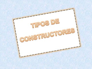El documento describe los constructores en Java. Define un constructor como un método especial que se ejecuta automáticamente cuando se crea un objeto para inicializar los estados de las variables de instancia. Explica que los constructores pueden ser por defecto, de copia o personalizados y proporciona ejemplos de sintaxis y uso de cada tipo.