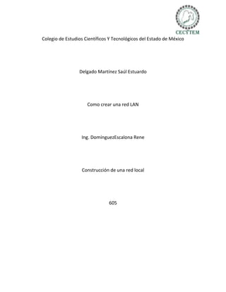 Este documento describe cómo construir una red local (LAN) utilizando cable UTP categoría 5, conectores RJ45, un switch y computadoras personales. Explica que la red debe tener una configuración en estrella con cada computadora conectada al switch, y que todos los equipos deben asignarse el mismo nombre de grupo de trabajo. Además, indica los pasos para crear e interconectar el grupo de trabajo y ver los equipos conectados a la red.