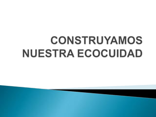 El documento presenta varias herramientas digitales como Facebook, MySpace y foros para ayudar a resolver los problemas de la alcaldía local en la construcción de una Ecociudad ideal y mejorar la calidad de vida de los ciudadanos de manera sostenible. Explica cómo estas herramientas permiten concienciar sobre el medio ambiente y generar discusiones para encontrar soluciones. También proporciona consejos sobre cómo cuidar el medio ambiente reduciendo el consumo de agua, energía y contaminación.