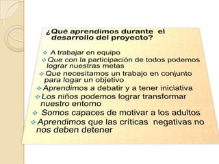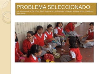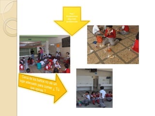 Este documento describe los esfuerzos de los estudiantes y padres de una escuela primaria en México para construir un comedor escolar a través de varias actividades de recaudación de fondos como un bazar, kilómetro del peso, recolección de PET y una rifa navideña. Lograron recaudar fondos suficientes para proporcionar a 885 estudiantes un lugar higiénico para comer en la escuela en lugar de comer en el piso. Los estudiantes aprendieron lecciones sobre clasificación de basura y convivencia a través del