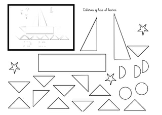 Colorea y recorta piezas de un modelo para reconstruir un árbol. Luego, une puntos numerados para completar la otra mitad del dibujo y colorearlo. Por último, une puntos del 1 al 22 para terminar el dibujo completo.