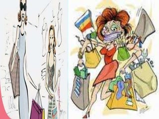 Este documento describe los diferentes tipos de consumo, incluyendo consumo experimental, ocasional y habitual. También discute el consumo privado y público, las causas del consumismo como la publicidad y baja calidad de productos, y ejemplos de tentaciones de consumo como ropa y electrónicos. Finalmente, analiza las diferencias en el gasto y consumo entre jóvenes hombres y mujeres, y ofrece consejos para un consumo más responsable.