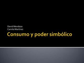 El documento analiza las ideas de Bourdieu sobre el consumo y poder simbólico. Explica que la sociedad es un sistema de relaciones de fuerza y sentido entre grupos y clases, y que los objetos pueden acceder a significados diferentes dependiendo del consumo legitimo, medio o popular. También describe el gusto hegemónico como legitimo frente al gusto bárbaro, y cómo la percepción de una obra de arte depende tanto de la obra en sí como de la forma de llegar a ella y el sistema simbólico en el que se enmarca.