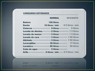 El documento habla sobre la importancia del agua y cómo su manejo afecta a otros recursos como el suelo y la biodiversidad. El agua es un recurso limitado por el que compiten diferentes actividades como la agricultura, la industria y los municipios. A menudo estas actividades desperdician el agua o la devuelven contaminada, lo que afecta negativamente no solo a estas actividades sino también a la salud humana y al medio ambiente.