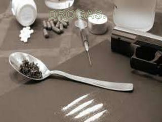 El documento discute el consumo de drogas entre adolescentes, señalando que las drogas sociales más comunes son el alcohol y el tabaco. Explica que las drogas naturales como la marihuana pueden causar euforia, cambios de humor y pérdida de control, aunque no necesariamente dependencia física. También analiza los efectos del Rohipnol, un sedante potente asociado con violaciones, y del alcohol, una droga socialmente aceptada pero consumida cada vez a más temprana edad.