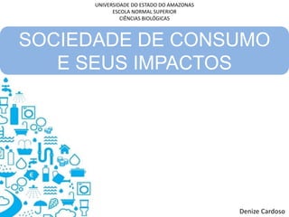 La sociedad de consumo y sus impactos es un documento de la Universidad del Estado de Amazonas que analiza cómo la sociedad de consumo afecta a la sociedad y el medio ambiente. El documento explora los efectos negativos del consumismo excesivo como el desperdicio, la contaminación y la dependencia en los productos.