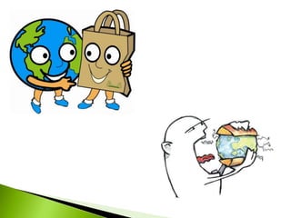 El documento habla sobre el consumo responsable y cómo elegir opciones que protegen el medio ambiente y promueven la justicia social. También menciona una tienda virtual llamada DUHEM que vende productos para apoyar causas sociales como los derechos humanos, incluyendo una organización que ayuda a víctimas de trata de personas a través de la educación.