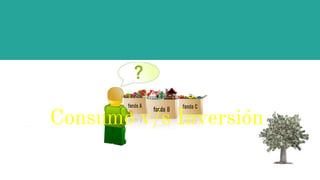 Este documento discute el consumo versus la inversión. Explica que el consumo implica la adquisición de bienes y servicios para satisfacer necesidades y deseos individuales, mientras que la inversión implica la aplicación de recursos financieros para aumentar los activos fijos o financieros de una entidad. También analiza los componentes del consumo, la función de consumo, los determinantes de la inversión como los ingresos, costos y expectativas, y la curva de demanda de inversión.