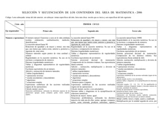 Este documento presenta un plan de acción para abordar los conceptos y ideas básicas de matemática desde primer grado hasta segundo año de nivel medio, incluyendo la selección y secuenciación de contenidos de áreas como número y operaciones, nociones geométricas y mediciones.