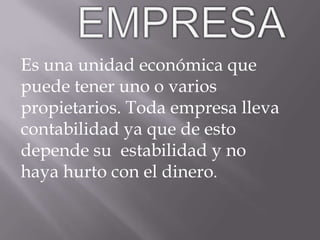La contabilidad permite llevar el control económico y financiero de una empresa mediante la aplicación de un sistema contable que incluye un plan de cuentas, documentación sustentadora de las transacciones como facturas y comprobantes, y la utilización de libros contables obligatorios como el libro diario y el libro mayor. El proceso contable genera estados financieros como el estado de situación financiera y el estado de resultados.