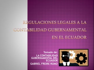 Este documento describe los principios y características de la contabilidad gubernamental en Ecuador. La contabilidad debe integrar las operaciones patrimoniales, presupuestarias y de costos para proporcionar información completa. Se implementará un Sistema Único de Cuentas para registrar de manera uniforme las transacciones en todo el sector público.