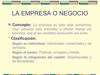 Este documento define conceptos básicos de contabilidad como la empresa, tipos de sociedades, la importancia de la contabilidad para la toma de decisiones, y principios contables fundamentales como la ecuación contable y la partida doble. Explica que la contabilidad registra transacciones financieras para proporcionar información útil, y que sigue marcos legales y principios como la revelación suficiente y la consistencia.