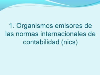 El documento proporciona información sobre las normas internacionales de contabilidad y los componentes básicos de la contabilidad como estados financieros, cuentas, periodos contables, y el ciclo contable. Explica conceptos como cuentas reales vs nominales, asientos de ajuste, estado de resultados, flujos de efectivo y los pasos para completar el ciclo contable de una empresa.