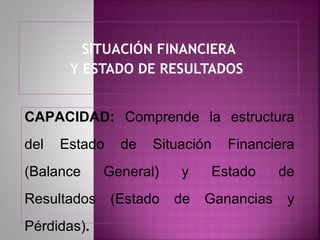 El documento describe el proceso de cierre contable al final de un período, el cual incluye elaborar asientos de ajuste y de cierre para cancelar las cuentas de resultados y trasladar sus saldos a las cuentas de balance, determinando así la utilidad o pérdida del período.