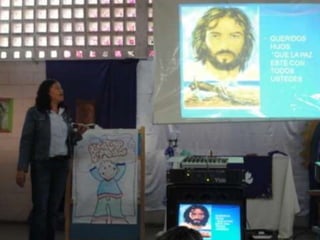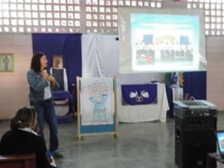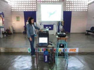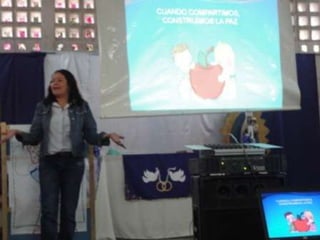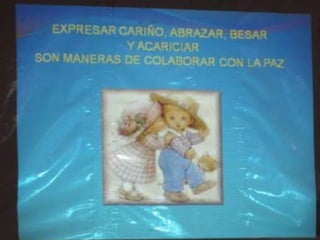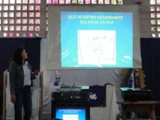 El documento describe un proyecto de un mural titulado "Contagiémonos con la Paz" realizado por estudiantes y profesores en una escuela en Barquisimeto, Venezuela. El mural tiene como objetivo promover un mensaje de paz y construir una cultura de no violencia.