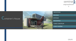 Este documento describe el uso de contenedores marítimos para la construcción de viviendas. Los contenedores son elementos prefabricados y robustos que se usan comúnmente para el transporte de mercancías por vía marítima, terrestre o ferroviaria. El proyecto propone convertir estos contenedores en viviendas para proveer hogares a familias necesitadas y reciclar los contenedores. Se analizan las ventajas y desventajas de usar contenedores para la construcción y se presenta un prototipo de vivienda unifamiliar aislada construida