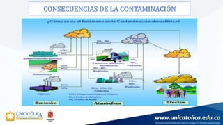 La contaminación ambiental se refiere a la presencia de agentes nocivos en el entorno que afectan la salud y el bienestar de seres vivos y ecosistemas. Se origina principalmente por actividades humanas, y sus consecuencias incluyen problemas de salud, destrucción del hábitat, y daño a recursos vitales como el agua y el aire. Es crucial promover la conciencia ambiental y aplicar medidas para prevenir y mitigar su impacto.