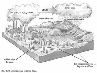 Este documento trata sobre la contaminación del aire. Explica que existen tres tipos de contaminantes atmosféricos: biológicos, físicos y químicos. Entre los contaminantes físicos se encuentran el ruido, las radiaciones ionizantes y no ionizantes. El accidente de Chernobyl en 1986 fue uno de los peores accidentes nucleares, liberando grandes cantidades de radiación y afectando a miles de personas. La energía nuclear también tiene inconvenientes como la contaminación radiactiva potencial debido a accidentes o residuos nucleares.