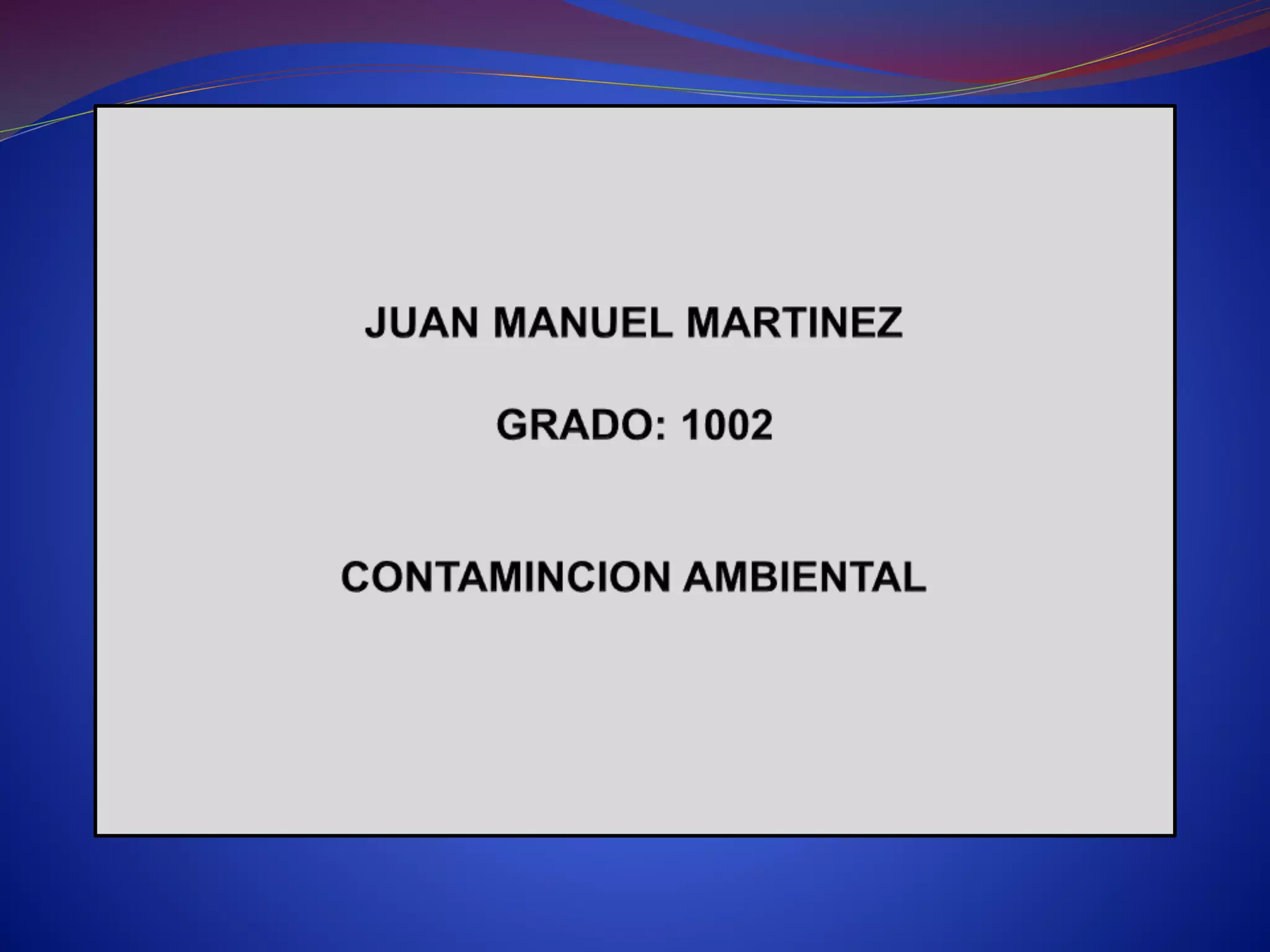 La contaminación ambiental se produce cuando se introducen agentes en el medio ambiente en proporciones mayores de lo normal, alterando su estado natural. Los principales tipos de contaminación son la del agua, el suelo y el aire. Las principales causas son los desechos sólidos, los fertilizantes y productos químicos en exceso, la tala y quema de árboles, y los vehículos. La contaminación ambiental tiene graves efectos en la salud humana y en el planeta. Para prevenirla y solucionarla, debemos reducir el consumo de