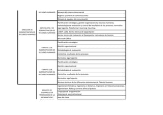 El documento presenta una lista de temas generales relacionados con pruebas técnicas para diferentes puestos y áreas en el Ministerio de Relaciones Exteriores, incluyendo administración de recursos humanos, tecnologías de la información, gestión documental, valija diplomática y soporte técnico. Los temas incluyen habilidades en software, hardware, redes, bases de datos, gestión de proyectos, normativa legal y habilidades blandas como atención al usuario.