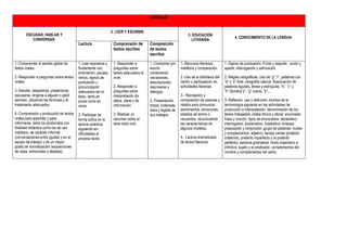 El documento presenta los contenidos mínimos de 5o curso de primaria en el CEIP Colón de Linares. Incluye las áreas de Lenguaje, Matemáticas, Ciencias Naturales/Sociales, Inglés. En Lenguaje se detallan los contenidos de Escuchar, Hablar, Leer, Escribir y Conocimiento de la Lengua. En Matemáticas se incluyen Números, Operaciones, Medida, Geometría y Tratamiento de la Información. Las Ciencias Naturales/Sociales abarcan distintos temas de ambas