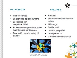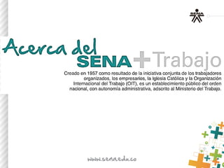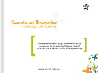 El documento describe el objetivo y componentes estratégicos de la Coordinación Nacional de Fomento del Bienestar y Liderazgo del Aprendiz del SENA. El objetivo es fortalecer el perfil de los aprendices de manera integral promoviendo competencias socioemocionales para su crecimiento personal y desempeño laboral. Los 9 componentes estratégicos son salud, equidad, competencias básicas, habilidades socioemocionales, cultura, deporte, liderazgo, responsabilidad social y convivencia.