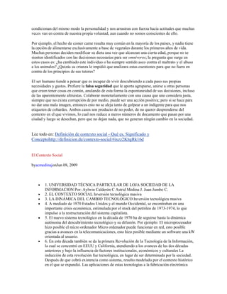 1. El contexto social se refiere a los factores culturales, económicos e históricos que forman parte de la identidad y realidad de una persona y que influyen en su desarrollo.
