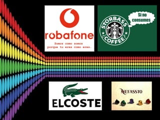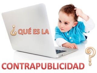Este documento define la contrapublicidad como una herramienta de resistencia contra las grandes corporaciones que consiste en parodias o juegos de palabras basados en anuncios públicos con un fin crítico. Existen tres tipos de contrapublicidad: artística, contractual y basada en denunciar el tipo de sociedad de consumo. El mensaje contrapublicitario se crea modificando elementos visuales o de texto de anuncios existentes para cambiar su significado, o diseñando una campaña original de denuncia.