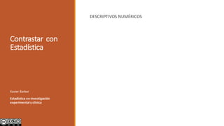Este documento explica los conceptos básicos de los contrastes de hipótesis, incluyendo definiciones de hipótesis nula e hipótesis alternativa, nivel de significación, región crítica, p-valor, errores tipo I y tipo II. Luego presenta fórmulas para contrastes comunes como contrastes bilaterales y unilaterales para la media, y discute el uso de intervalos de confianza para realizar contrastes de hipótesis. Finalmente, incluye ejemplos numéricos para ilustrar los diferentes tipos de contrastes.