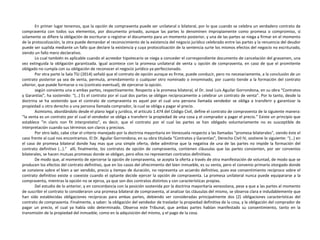 Este documento discute la diferencia entre una promesa unilateral y bilateral de compraventa. Explica que un contrato de compraventa celebrado por escrito privado es válido aunque las partes lo llamen impropiamente una promesa o compromiso. También explica que un contrato de opción puede conducir a un contrato de venta posterior si se ejerce la opción. Finalmente, analiza el documento presentado y determina que aunque las partes lo llamaron una promesa bilateral, en realidad cumple con los requisitos de un contrato de compravent