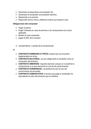 Este documento contiene un modelo de contrato de compraventa internacional que establece los términos y condiciones de una transacción comercial entre un vendedor y un comprador. El contrato especifica detalles como la mercancía objeto de la compraventa, el precio, las condiciones de entrega, plazos de pago, documentación requerida y la legislación aplicable.