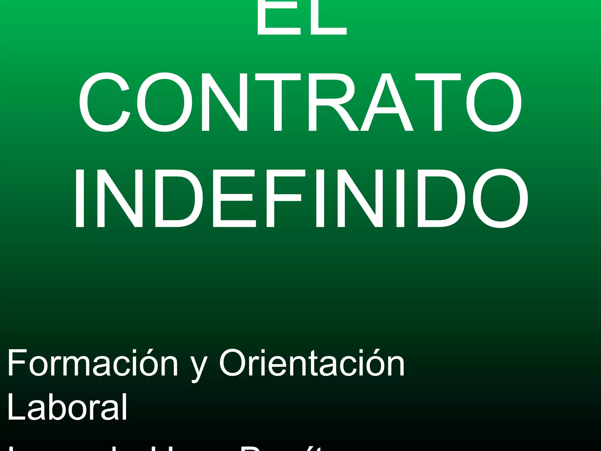 El documento describe las diferentes modalidades del contrato indefinido en España. Estas incluyen el contrato ordinario, de apoyo al emprendedor, fijo discontinuo, para trabajadores en situación de exclusión social, víctimas de violencia de género o terrorismo, mayores de 52 años beneficiarios de subsidio de desempleo, para jóvenes contratados por microempresas o autónomos, y para socios trabajadores de cooperativas con desempleados. Cada modalidad tiene requisitos específicos para empresas y trabajadores.