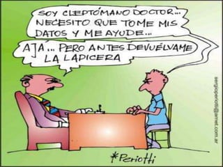 Cleptomanía Característica esencial Dificultad recurrente para controlar los impulsos de robar cualquier objeto, aunque no sea necesario valor uso económi personal co