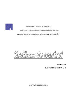 Este documento es un certificado de bachiller para Hanna Clor con número de cédula 20.916.340, otorgado por el Instituto Universitario Politécnico "Santiago Mariño" en Maturín, Venezuela en julio de 2014.