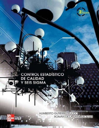 Este documento presenta un libro sobre control estadístico de calidad y Seis Sigma. El libro cubre conceptos básicos de calidad, capacidad de procesos, probabilidad, inferencia estadística, índices de capacidad, métricas Seis Sigma, cartas de control, detección de cambios, estado de procesos, calidad de mediciones, muestreo de aceptación, confiabilidad, análisis de modos y efectos de fallas y la estrategia Seis Sigma. El objetivo del libro es proporcionar herramientas